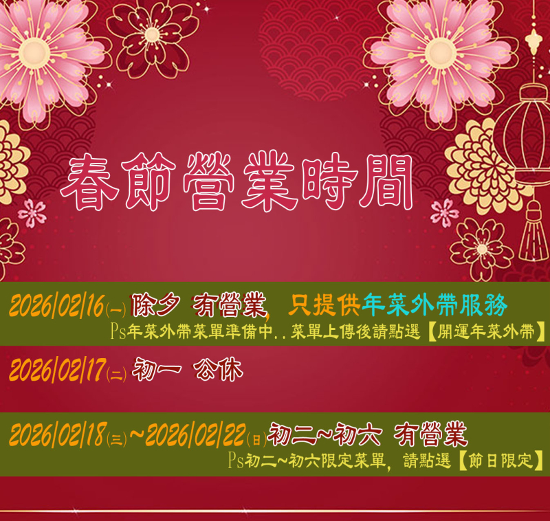 (晚餐時段用餐~請於當日Pm16:00以前來電預約)